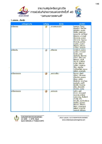 Page 146 - เล่มสรุปรายงานผล_ฉลามเยาวชลเกมส์_การแข่งขันกีฬาเยาวชนแห่งชาติครั้งที่ 40
