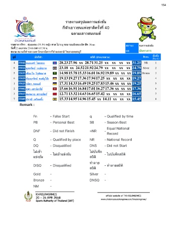 7 55009 ปราณ เพร ดพร ง 15.3314.9514.9615.45 xx 14.11 xx xx xx 15.45 8