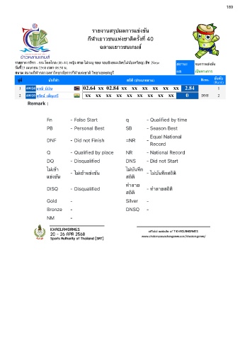 รายการ กร ฑา - กระโดดไกล (40-44) หญ ง สาย ไม ระบ รอบ รอบช งขนะเล ศ(ไม น บเหร ยญ) ฮ ท .None สถานะ จบการแข งข น