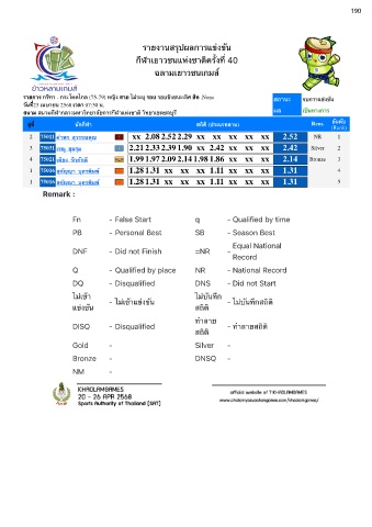 รายการ กร ฑา - กระโดดไกล (75-79) หญ ง สาย ไม ระบ รอบ รอบช งชนะเล ศ ฮ ท .None สถานะ จบการแข งข น